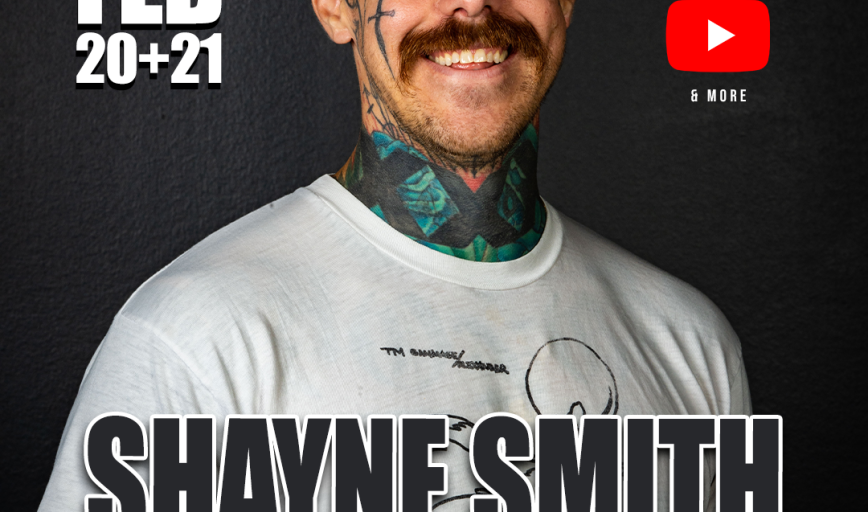 Shayne Smith is a Utah-born comedian, writer, podcaster, and musician whose raw, story-driven comedy has earned him a devoted following. After launching his stand-up career in 2014, he quickly amassed accolades including runner-up in Wiseguys’ 2015 “Funniest Person in Utah” contest and Best Alternative Comedian of 2016 by City Weekly. He went on to release a string of acclaimed specials: Prison for Wizards (2018), Alligator Boys (2019), The Animal (2021), Banned from Karate (2023), and most recently Ghosts Are Real (January 2025). Alongside his specials, Shayne contributes to One Blade Magazine and fronts the band Painted Devils all while touring sold-out venues nationwide.