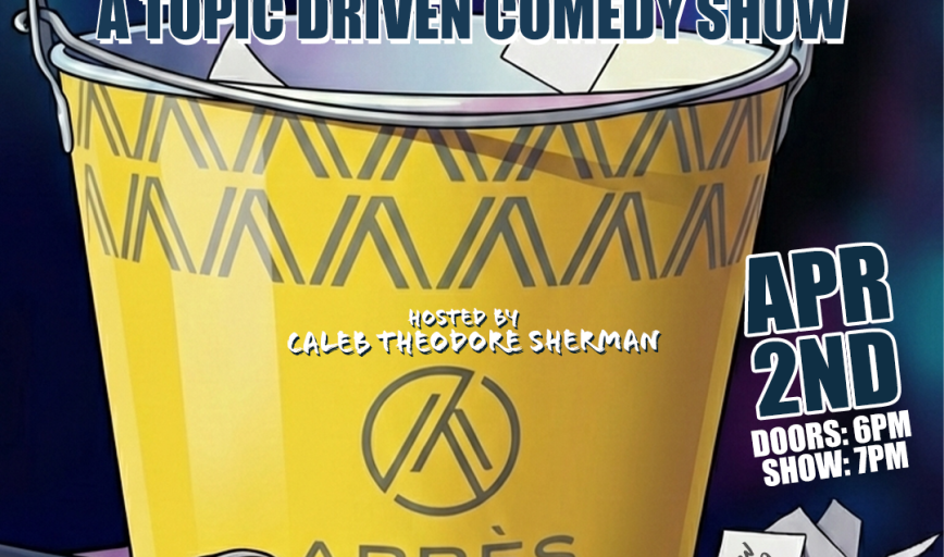 The Bucket Comedy Show is a fast-paced, audience-inspired comedy experience. Our talented lineup of comedians creates jokes on the fly, based on topics submitted by the audience—dropped into the infamous bucket. No subject is off limits. It’s unpredictable, unfiltered, and completely driven by you. Join us for a night where you steer the show!Tickets are ONLY $10!for fans of 'Stand Up on the Spot'Doors at 6pm | Show at 7pm | 21+Sponosored by AprėsFeaturing drink specials by Aprės!
