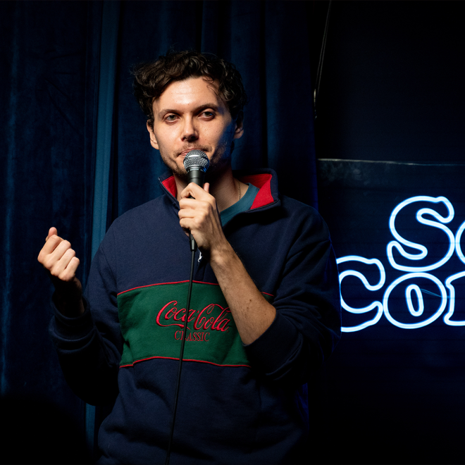 Known for his observational comedy and relatable style, Jonathan has worked as a frequent opener for comedians such as David Cross, Rory Scovel, Gianmarco Soresi, Kyle Gordon, and Sabrina Wu. He hosts a popular monthly show at Union Hall in Brooklyn called Hot Gossip, which has been featured in The New York Times and Brooklyn Magazine.