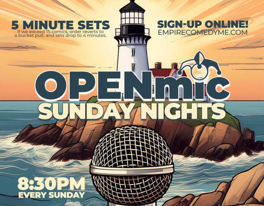 Ready to test your material or just want a night of laughs? Join us every Sunday night at Empire Comedy Club for OPENmic, a welcoming stage for everyone—from seasoned pros to first-timers. Each comic gets 5 minutes, and if the list tops 15 performers, set times drop to 4 minutes, and we switch to a bucket pull for a fun, random lineup.