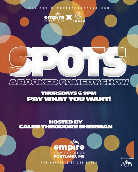 SPOTS is Empire Comedy Club’s weekly showcase spotlighting both rising voices and seasoned pros in a fast-paced showcase format. The show runs from 9:00–10:30PM and is primarily booked—with TWO bucket-pull spots every week.